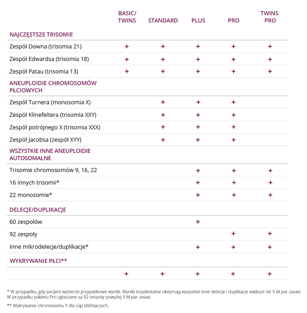 W przeciwieństwie do metod „sekwencjonowania celowanego” stosowanych w niektórych innych badaniach NIPT metoda stosowana w badaniu NIFTY by GenePlanet pozwala na uzyskanie większej liczby opcji badania, w tym m.in. pod kątem wszystkich trisomii autosomalnych i monosomii, aneuploidii chromosomów płciowych, a także zespołów delecji i duplikacji o wielkości przekraczającej 3 mln par zasad.